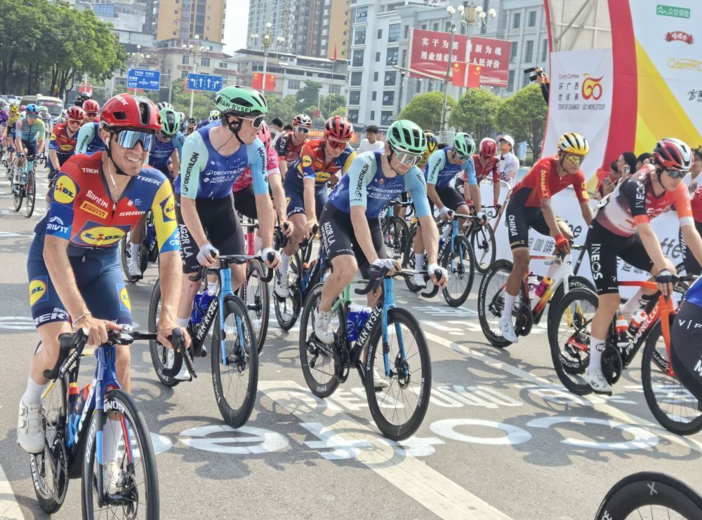 新华社南宁10月18日电(记者王楚然、赵欢)18日,2025年广西公路自行车世界巡回赛抵达宜州—农拉赛段第五赛段。杰科-阿鲁拉车队的车手保罗·达博以较大优势率先登顶,夺得赛段冠军。图为比赛从起点开始。新华社记者 王楚然 摄 第五赛段全长165.8公里,起止于河池市中心广场和南宁马山县弄拉风景区。沿途有两个冲刺点,一个一级爬升点,一个三级爬升点。这是本次赛事中唯一的山地终点赛段。登顶前的最后1.2公里,平均坡度为14.8%。该赛段因坡陡、急转弯、地形险峻而被称为“女王赛段”。距终点线还有40公里,四人进攻形成,苏浩宇来自喜德盛阿斯塔纳车队的年轻中国车手就在其中。进攻组在接下来的30公里比赛中始终保持领先,一度与主力组拉开3分钟的差距。距离终点线约20公里处,苏浩宇主动突破,率先超越冲刺第二点,缩短秒数。距离终点线约5公里,车手们接近第二个爬坡点。主力组各队积极调整冲刺形式,逐步吞噬突围车手。终点线前2公里处,保罗·达博率先发起进攻,在冲线前1.5公里处率先拿下第一赛段爬坡点。随后,达博乘胜追击,拉开与身后车手的距离,以大比分领先夺得冠军。图为保罗·达博冲过终点线。 (主办方提供照片)赛后,赛段冠军Paul Dabo身穿象征个人总分第一的红色球衣; Wisma-Ritzback 车队的尤尔根·诺德哈根 (Jürgen Nordhagen) 身穿代表最佳年轻骑手的白色球衣;快节奏的Speedo车队的Paul Magnier继续保留象征冲刺之王的蓝色球衣; Alkaea-B & B 酒店团队的 Simon Guglielmi 继续穿着圆点球衣。苏浩宇凭借本阶段最远距离胜利,荣获“敢战奖”。这是他继2023年之后,在艰难阶段第二次获得此奖项。 19日,2025年广西世巡赛将作为收官之战——南宁市赛段的决赛。