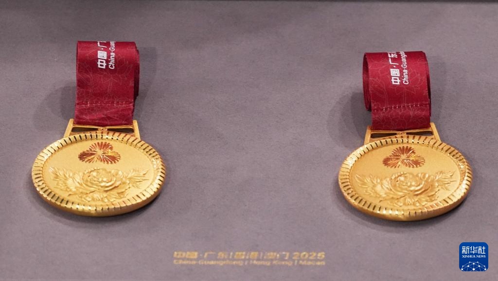 这是11月17日颁奖典礼上取得的金牌。当天,第十五届全运会女子50米蛙泳决赛在广东深圳举行。新华社记者 夏芳芳 摄 11月17日,上海队冠军唐前廷(左)与山西队亚军杨昶在颁奖仪式后合影。当日,第十五届全运会50米蛙泳决赛在广东深圳举行。新华社记者 杜宇 摄 11月17日,香港队季军选手施贝(右)和教练在颁奖典礼上向观众致意。当日,第十五届全运会50米蛙泳决赛在广东深圳举行。新华社记者 杜宇 摄